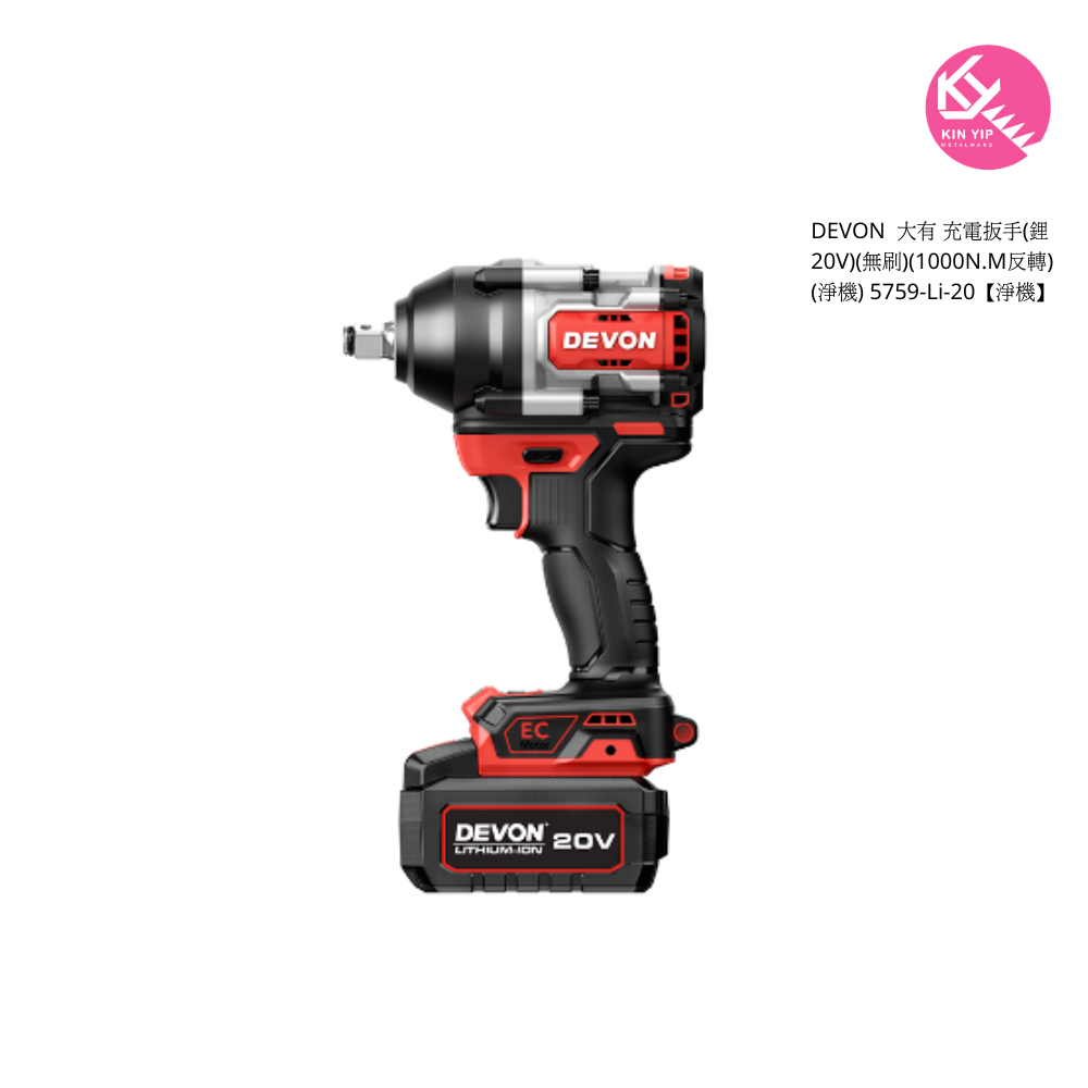 DEVON 大有 充電扳手(鋰20V)(無刷)(1000N.M反轉)(淨機) 5759-Li-20【淨機】